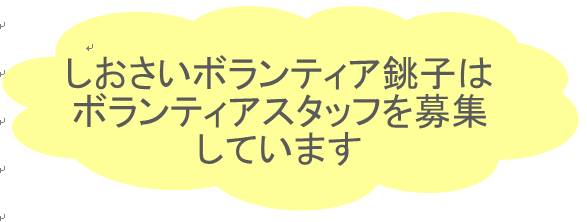 「しおさいボランティア銚子」は、千葉県銚子市で活動している精神障がい者支援ボランティアの会です。平成6年に発足し、現在会員数24名です。(R1.9.1現在)